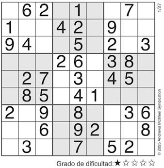 Complete el recuadro de tal manera que cada fila, columna y cuadro de 3x3 tengan los números del 1 al 9.