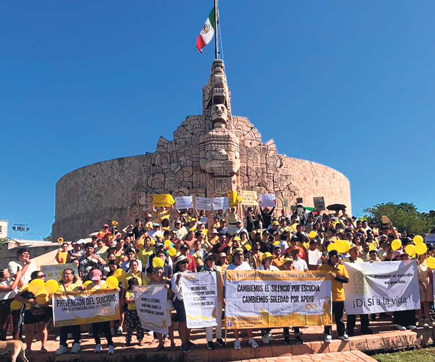 Vestidos de amarillo y con mensajes de aliento en pancartas, cerca de 200 personas marcharon ayer por Paseo de Montejo para exigir acciones urgentes ante el número de suicidios en el estado. Organizada por asociaciones civiles como Ancla de Esperanza y colectivos ciudadanos, la marcha buscó visibilizar un problema del suicidio.