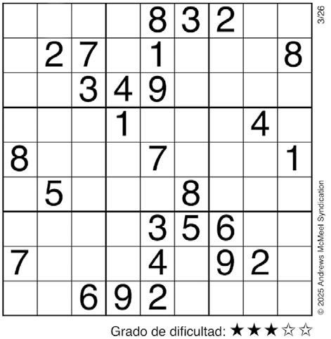 Complete el recuadro de tal manera que cada fila, columna y cuadro de 3x3 tengan los números del 1 al 9.
