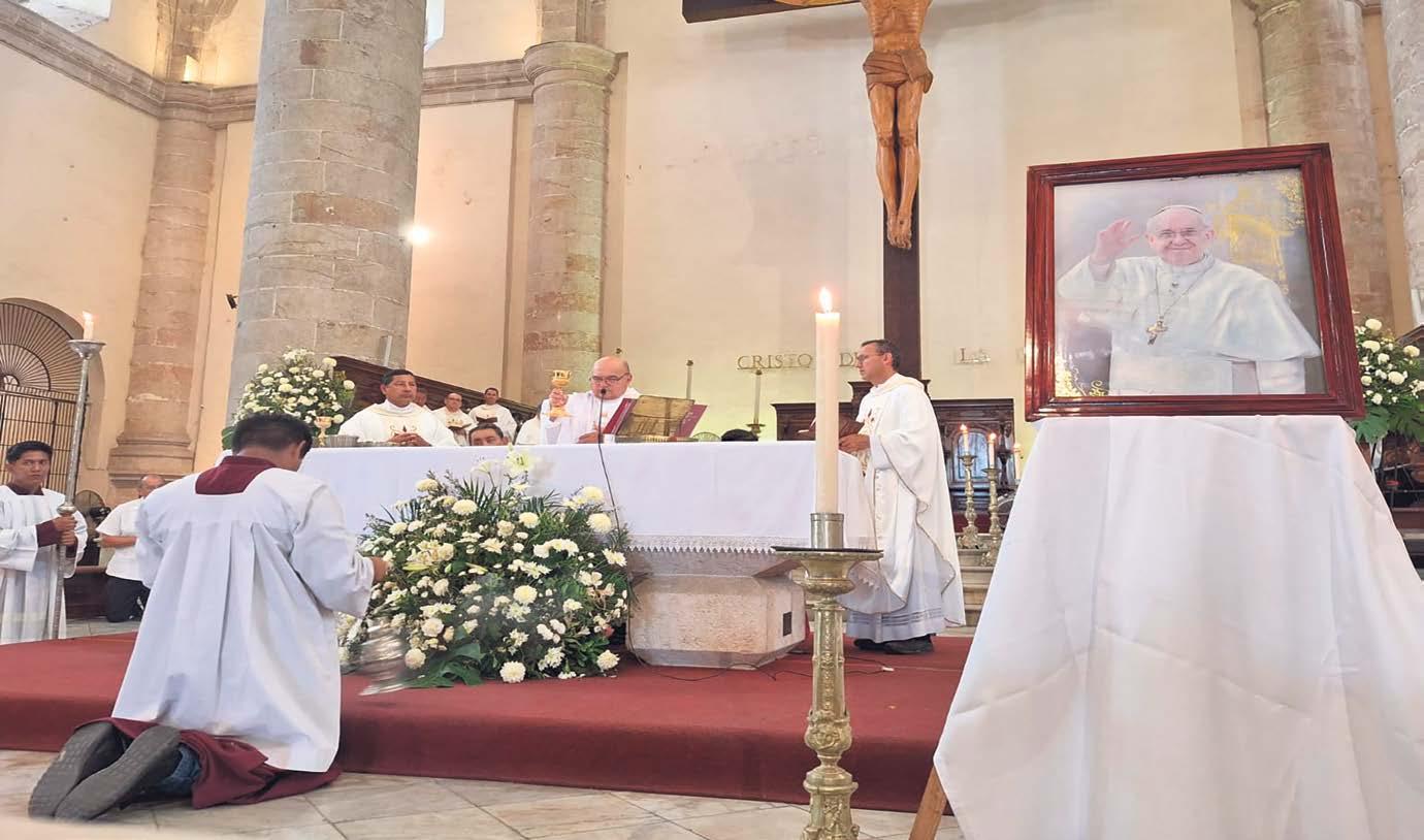 LUTO GLOBAL. Yucatán se unió a los homenajes y liturgias realizadas en el mundo para el papa Francisco, quien falleció a los 88 años. En la Catedral de San Ildefonso, el templo más importante de la fe católica en la entidad, tocaron las campanas y se realizó una misa encabezada por el obispo