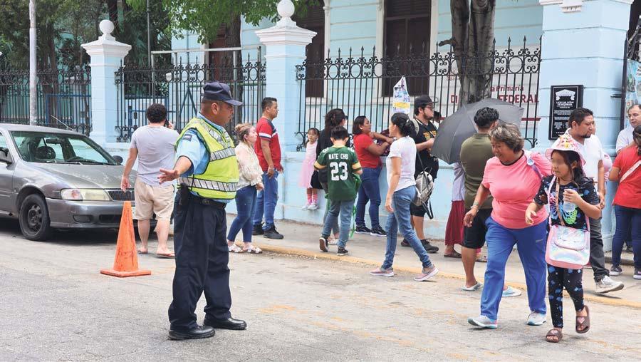 A efecto de reforzar la seguridad en los horarios de entrada y salida de las escuelas ubicadas en el primer cuadro de la ciudad, la Policía Municipal de Mérida implementó acciones en material vial en el área de jurisdicción.
