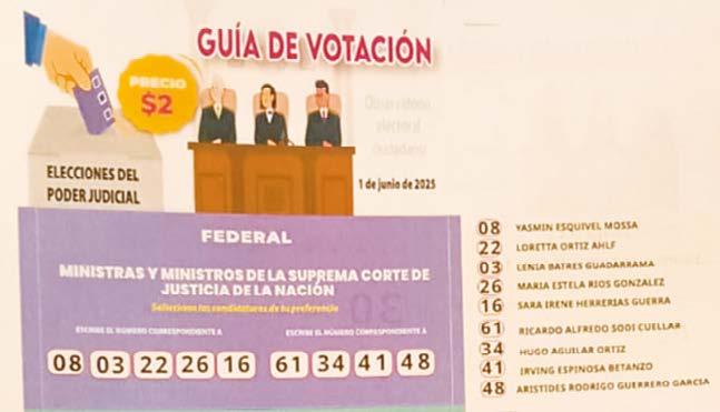 Cabe señalar que en la votación para ministras de la Suprema Corte de Justicia de la Nación, son Lenia Batres Guadarrama, Loreta Ortiz, Yasmín Esquivel Mossa, y Sara Herrerías Guerra, las que más votos acumulaban. En el caso de los candidatos, Hugo Aguilar Ortiz, Irving Espinoza Betanzo, Giovanni Azael Mejía