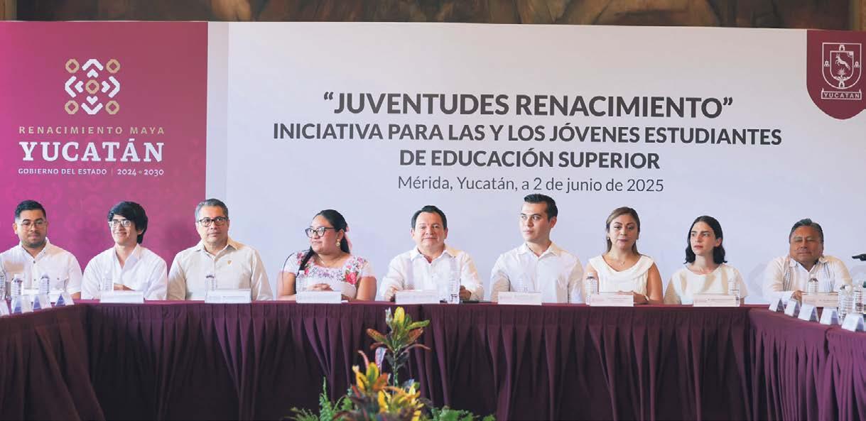 Con el objetivo de hacer de las y los jóvenes yucatecos el motor transformador del estado y velar porque nadie se quede atrás, el gobierno del estado presentó la iniciativa Juventudes Renacimiento, que busca abonar a mejorar las condiciones de los estudiantes de educación superior a través de la beca Jóvenes Renacimiento y la creación del Consejo Consultivo de Juventudes.