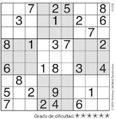 Complete el recuadro de tal manera que cada fila, columna y cuadro de 3x3 tengan los números del 1 al 9.