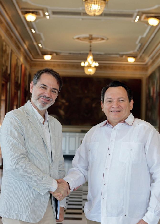 Para continuar impulsando estrategias conjuntas en materia comercial, turística, de agua, sanidad y movilidad sostenible que redunden en beneficio de las familias yucatecas, el Gobernador Joaquín Díaz Mena y el Embajador de España en México, Juan Duarte Cuadrado, sostuvieron una reunión en el Salón de los Retratos de Palacio de Gobierno.