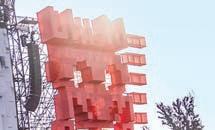 3. (... Mahal) Mausoleo construido cerca de Agra, maravilla del arte indio.