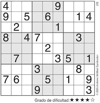 Complete el recuadro de tal manera que cada fila, columna y cuadro de 3x3 tengan los números del 1 al 9.