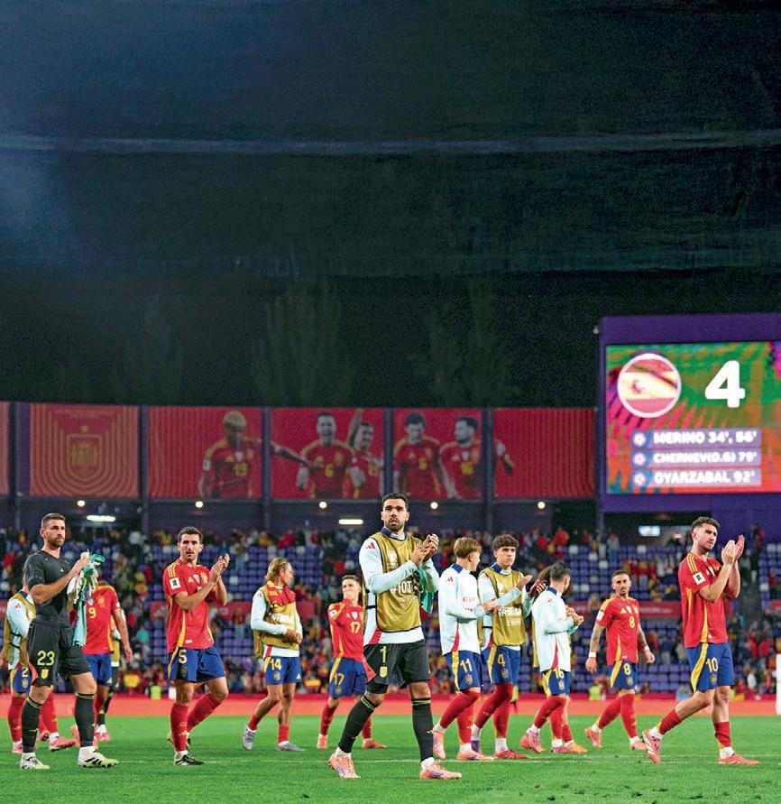 Ubicados como una de las selecciones más sólidas en el presente torneo de clasificación rumbo al Mundial 2026, España goleó 4-0 a Bulgaria en la actividad del grupo E de las eliminatorias de la Confederación Europea de Futbol Asociación (UEFA), que los ubicó como líderes del sector con 12 unidades y un paso perfecto hacia la justa del próximo año en Norteamérica. Un doblete de Mikel Merino, más un gol de Mikel Oyarzábal y un autogol de Atanasov Chernev definieron el juego en el que España extendió su paso dominante rumbo al Mundial, tras hilar cuatro encuentros sin goles recibidos y con 15 anotados. Dentro del mismo grupo, Turquía goleó 4-1 a Georgia para mantenerse segundo general del sector con nueve unidades y tres menos que los ibéricos.