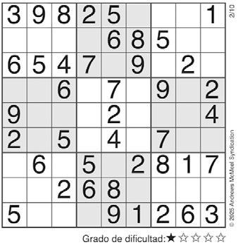 Complete el recuadro de tal manera que cada fila, columna y cuadro de 3x3 tengan los números del 1 al 9.