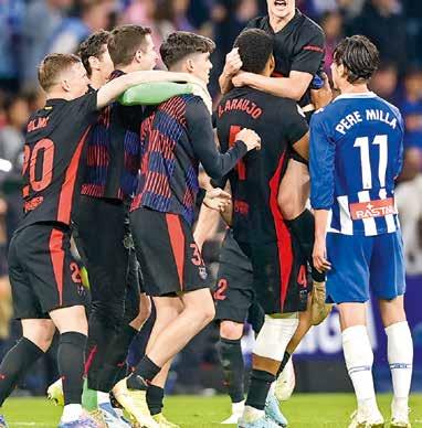 Los goles de Lamine Yamal y Fermín Lopez bastaron para que el FC Barcelona derrotara 0-2 en el Derbi de Cataluña ante el Espanyol, que condujo al equipo blaugrana a su vigesimoctavo título en España con dos jornadas aún por jugarse.