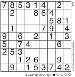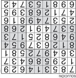 Complete el recuadro de tal manera que cada fila, columna y cuadro de 3x3 tengan los números del 1 al 9.