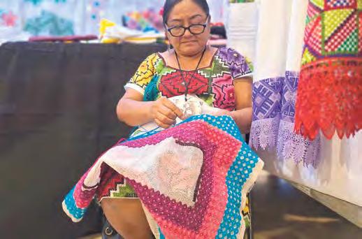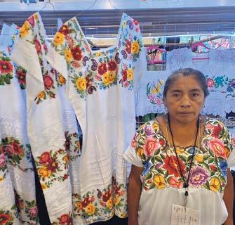 aprendió a bordar a los nueve años gracias a su madre. Hoy combina técnica a mano y con máquina industrial para elaborar desde ropa de bebé hasta prendas para adultos. “Esto ha sido mi sustento familiar, pero también una herencia. Lamentablemente, ya son pocas las jóvenes interesadas en con tinuar. Por eso abrí un taller en mi casa para enseñarles a las chicas lo que yo sé, porque solo tengo un hijo varón y quiero que el lega do no se pierda”, sentenció. Desde Oxkutzcab, Florita Canché con tinúa una tradición de tres generaciones dedicadas al punto de cruz: “aprendí con mi mamá hace 45 años”, recordó.