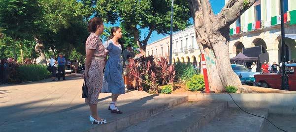 El centro histórico de Mérida amaneció distinto. Desde temprano, la Plaza Grande y los alrededores del Palacio de Gobierno se transformaron en un escenario que parecía arrancado de otra época. Camiones de producción, reflectores, cables, maquillistas y asistentes corriendo de un lado a otro anunciaban que el cine —o algo muy parecido— había decidido instalarse en pleno corazón de la capital yucateca. El asombro no tardó: entre el vaivén de la mañana aparecieron autos clásicos, relucientes, de líneas redondeadas, dignos de los años sesenta; extras con atuendos de la Cuba de aquella década caminaban, repetían indicaciones, posaban, se detenían, volvían a caminar. Como si una ventana al pasado se hubiera abierto de pronto frente a la Catedral. Los transeúntes, sorprendidos y un tanto divertidos, intentaban mantener distancia cuando la producción lo pedía con amabilidad. “Amigos, no crucen el cuadro, estamos a punto de grabar”, repetía el staff mientras los extras —militares, señoras con vestidos