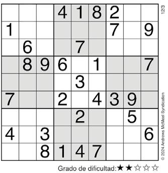 Complete el recuadro de tal manera que cada fila, columna y cuadro de 3x3 tengan los números del 1 al 9.