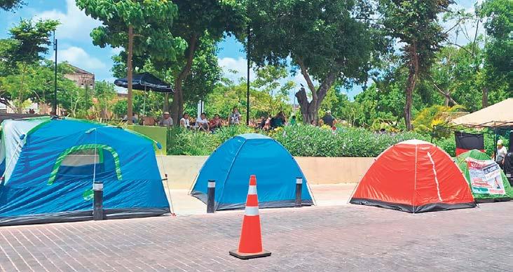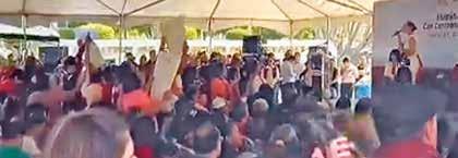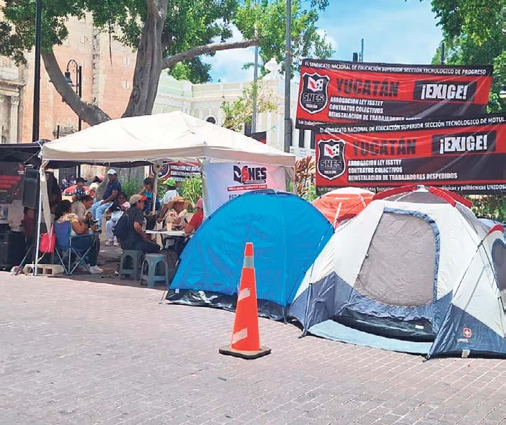 Docentes pertenecientes a la Coordinadora Nacional de Trabajadores de la Educación continúan con su campamento frente a la Plaza Grande como parte del movimiento buscando la abrogación de leyes que, aseguran, afectan las jubilaciones y cotizaciones de los maestros al ISSSTE y al IMSS, por lo que buscan que se coticen en salarios mínimos en lugar de UMAS. La protesta incluye a profesores desde maternales hasta tecnológicos y universidades.