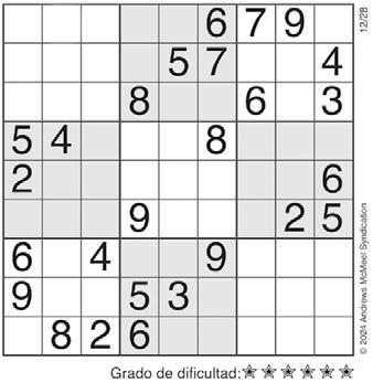 Complete el recuadro de tal manera que cada fila, columna y cuadro de 3x3 tengan los números del 1 al 9.