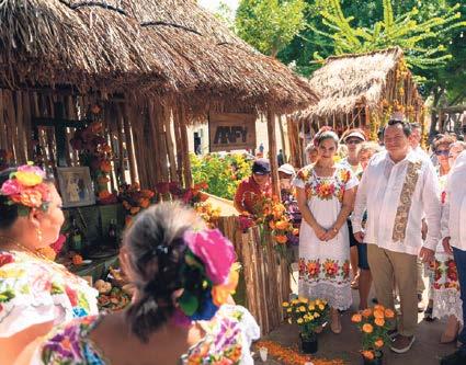 CELEBRACIÓN. Visitantes acudieron a la Muestra Estatal de Altares 2025 en Mérida para honrar a los difuntos con ofrendas y rituales mayas; el gobernador Joaquín Díaz Mena participó del recorrido y resaltó la riqueza cultural del estado P. 4