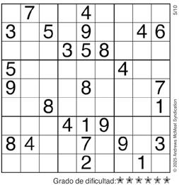 Complete el recuadro de tal manera que cada fila, columna y cuadro de 3x3 tengan los números del 1 al 9.