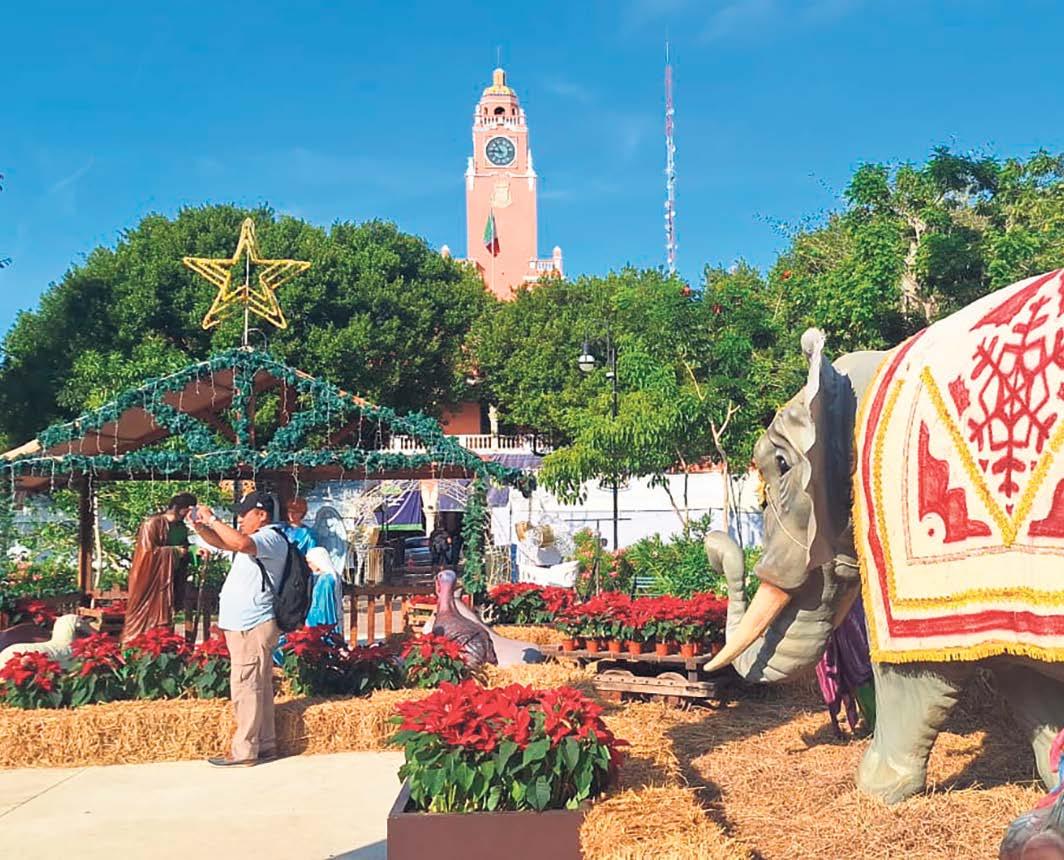 a nuestro canal de: WhatsApp CELEBRACIÓN. La Plaza Grande de Mérida luce adornos de las fiestas decembrinas; figuras gigantes del Nacimiento, regalos, esferas, piñatas y