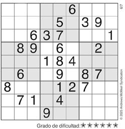 Complete el recuadro de tal manera que cada fila, columna y cuadro de 3x3 tengan los números del 1 al 9.