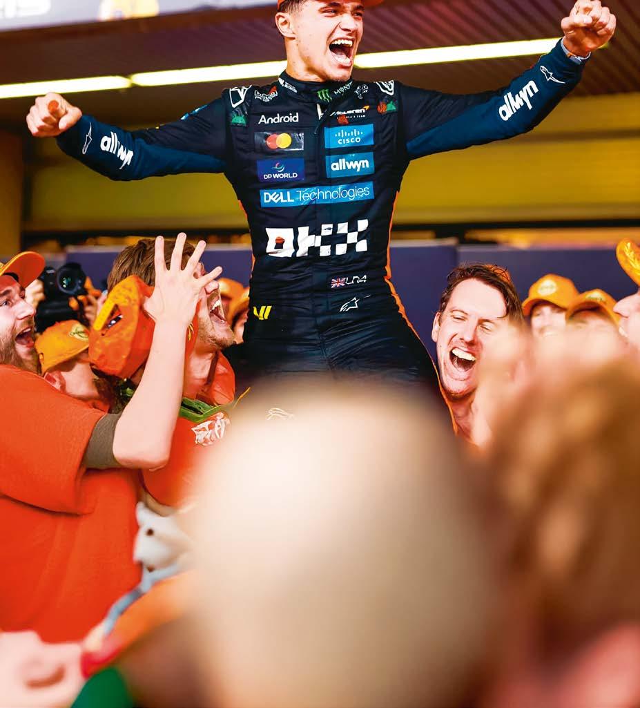 Ubicado apenas como el octavo campeón que surge del equipo color papaya, Norris se unió a una exclusiva lista en la que también están nombres como Emerson Fittipaldi, James Hunt, Niki Lauda, Alain Prost, Ayrton Senna, Mika Häkkinen y Lewis Hamilton, para un total de 13 coronas que presume la escudería británica, además de otros 10 de constructores, sumado el logrado este mismo año.