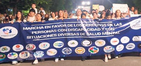 Durante el trayecto familias portaron pancartas con frases como “La inclusión no es un favor, es un derecho” y “Nada sobre nosotros sin nosotros”.