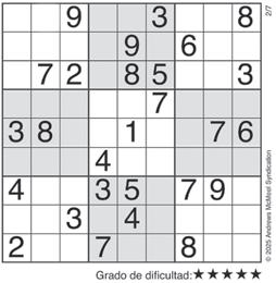 Complete el recuadro de tal manera que cada fila, columna y cuadro de 3x3 tengan los números del 1 al 9.