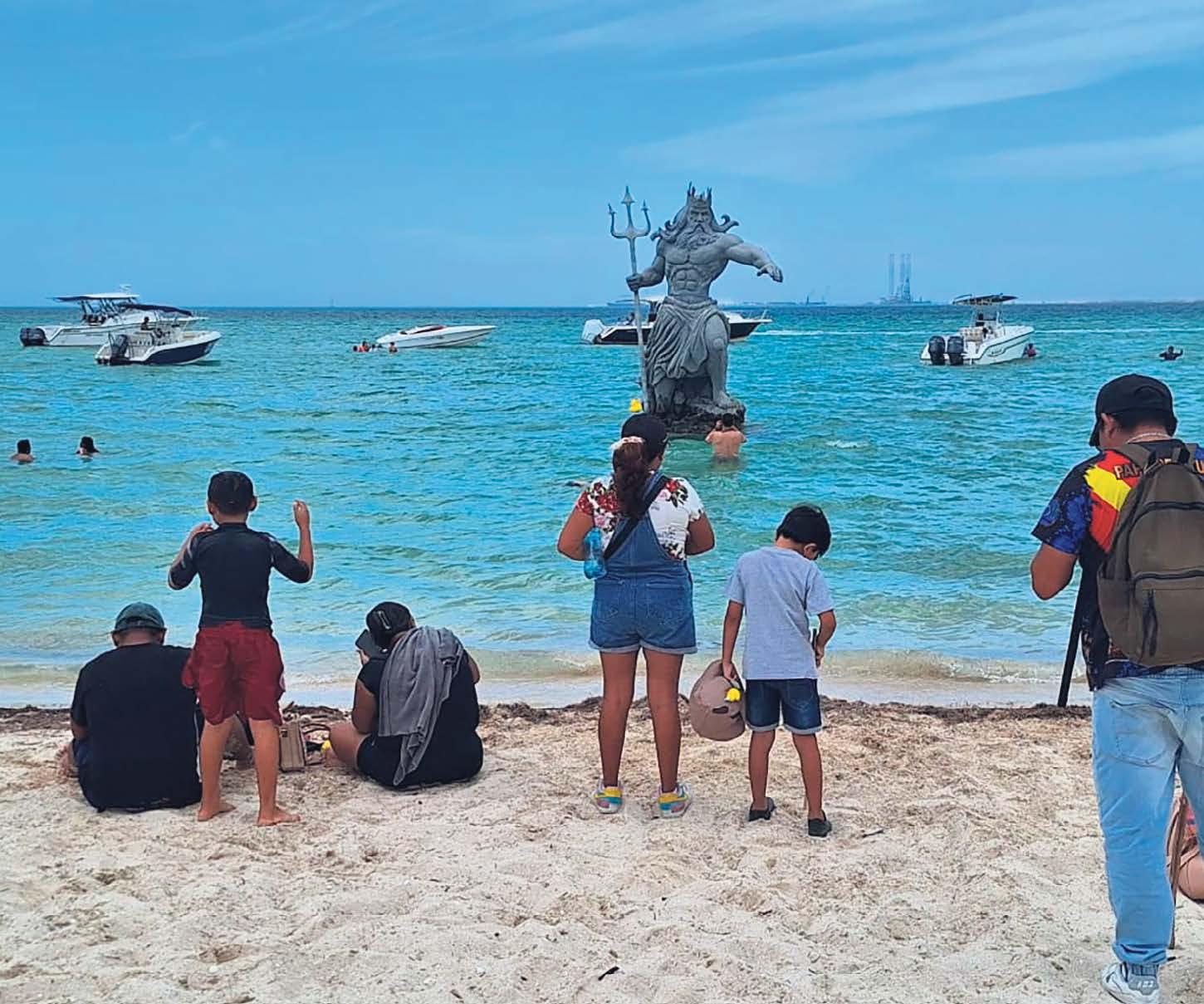VERANO. Arranca temporada vacacional en Progreso con gran afluencia y ventas moderadas. Familias disfrutan playa y posan junto a Poseidón, mientras comerciantes esperan mejores ingresos en próximas semanas P . 6