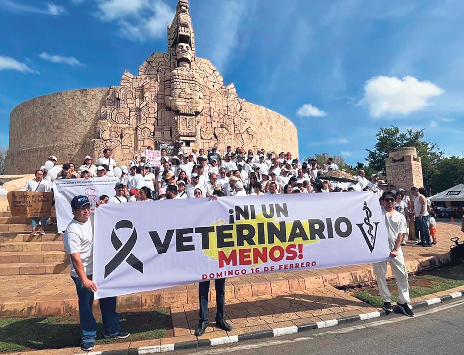 UNIÓN . Veterinarios yucatecos se manifestaron en el Monumento a la Patria, para exigir respeto a su profesión y poner un alto a la criminalización y violencia del que han sido objeto algunos de sus miembros P.5