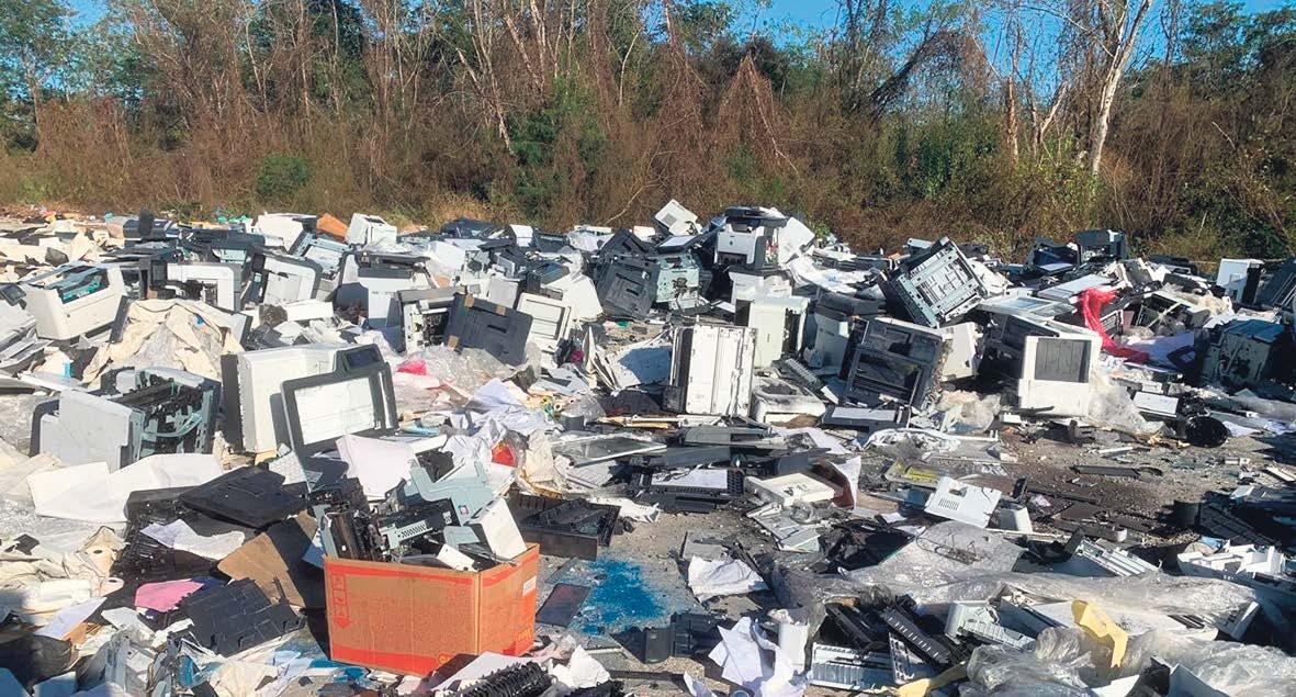 Por ejemplo, en una brecha en la entrada del municipio de Abalá, en Yucatán, fueron encontradas montañas de basura electrónica, el mes pasado, principalmente fotocopiadoras, impresoras y tóners junto con documentos de una empresa de papelería.