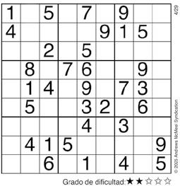 Complete el recuadro de tal manera que cada fila, columna y cuadro de 3x3 tengan los números del 1 al 9.