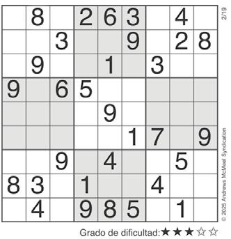 Complete el recuadro de tal manera que cada fila, columna y cuadro de 3x3 tengan los números del 1 al 9.
