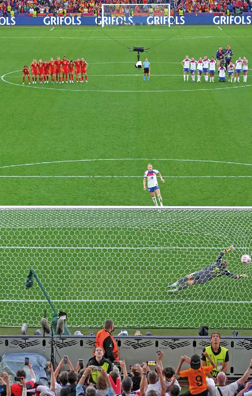 Con par de penales atajados por Hannah Hampton y Cata Coll por ambos bandos, al final fue una falla de Salma Paralluelo que mandó fuera del arco lo que sentenció el triunfo inglés, con la posterior anotación de Chloe Kelly para la consagración de las ahora bicampeonas.