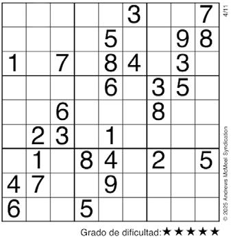Complete el recuadro de tal manera que cada fila, columna y cuadro de 3x3 tengan los números del 1 al 9.