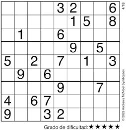 Complete el recuadro de tal manera que cada fila, columna y cuadro de 3x3 tengan los números del 1 al 9.