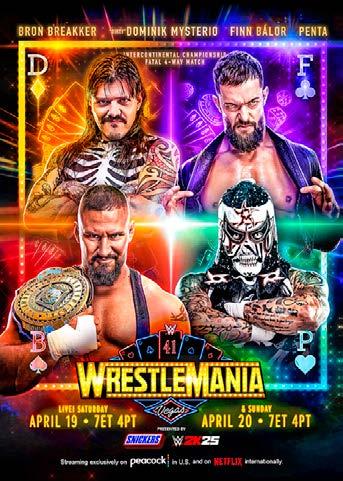 En busca de conquistar su primer título dentro de la empresa estadounidense de World Wrestling Entertainment, el mexicano Penta Zero Miedo quedó confirmado como integrante de una de las peleas dentro de Wrestlemania 41, que se realizará el 19 y 20 de abril de 2025, en el Allegiant Stadium de la ciudad de Las Vegas. El oriundo de Ecatepec, Estado de México, peleará en un inédito encuentro entre cuatro luchadores por el cinturón de campeón intercontinental, que actualmente le pertenece al peleador Bron Breakker Junto a ambos también estarán Finn Bálor y Dominik Mysterio, hijo de Rey Mysterio y personaje con el que Penta ha comenzado a escribir una de sus primera rivalidades en WWE, que ya suma una contienda entre ambos luego de la función de este lunes por la noche.
