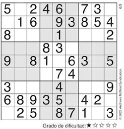 Complete el recuadro de tal manera que cada fila, columna y cuadro de 3x3 tengan los números del 1 al 9.