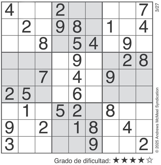 Complete el recuadro de tal manera que cada fila, columna y cuadro de 3x3 tengan los números del 1 al 9.