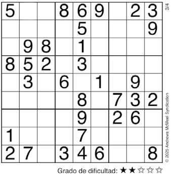 Complete el recuadro de tal manera que cada fila, columna y cuadro de 3x3 tengan los números del 1 al 9.