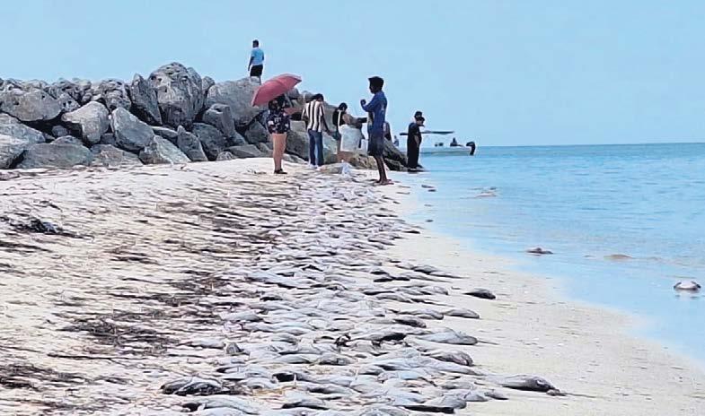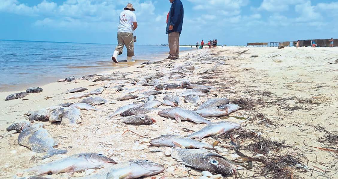 Cientos de especies marinas vararon en Chuburná, Progreso, por un acontecimiento llamado Florecimiento Algal Nocivo, que reduce el oxígeno en el agua y obliga a la fauna a huir. Pescadores y prestadores turísticos expresan su preocupación por el impacto económico. Autoridades y especialistas del Cinvestav monitorean el evento y recomiendan evitar consumir los animales muertos para prevenir riesgos sanitarios P. 3
