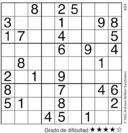 Complete el recuadro de tal manera que cada fila, columna y cuadro de 3x3 tengan los números del 1 al 9.