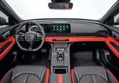 verticales que preside a un conjunto de líneas angulares y aire futurista que lo diferencia de otras propuestas más conservadoras. Rines de aluminio de 19 pulgadas, retrovisores calefactables y plegables al color de la carrocería. Además la versión GL Racer, que fue la que probé, tiene un bodykit con detalles en color naranja para los faldones y el alerón. Todos los materiales transmiten calidad, un buen ensamble con insertos en acabado negro piano y el sistema multimedia cuenta con una pantalla central de 10.25 pulgadas, un clúster digital de igual tamaño y con una interfaz mo-