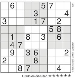 Complete el recuadro de tal manera que cada fila, columna y cuadro de 3x3 tengan los números del 1 al 9.