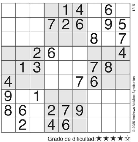 Complete el recuadro de tal manera que cada fila, columna y cuadro de 3x3 tengan los números del 1 al 9.