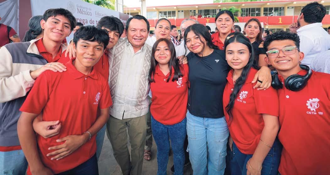 Díaz Mena igualmente encabezó la entrega de tarjetas del programa La Escuela es Nuestra en el Centro de Estudios Tecnológicos Industrial y de Servicios (Cetis) 112, con el objetivo de fortalecer y modernizar la infraestructura educativa en el estado.