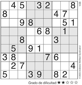 Complete el recuadro de tal manera que cada fila, columna y cuadro de 3x3 tengan los números del 1 al 9.