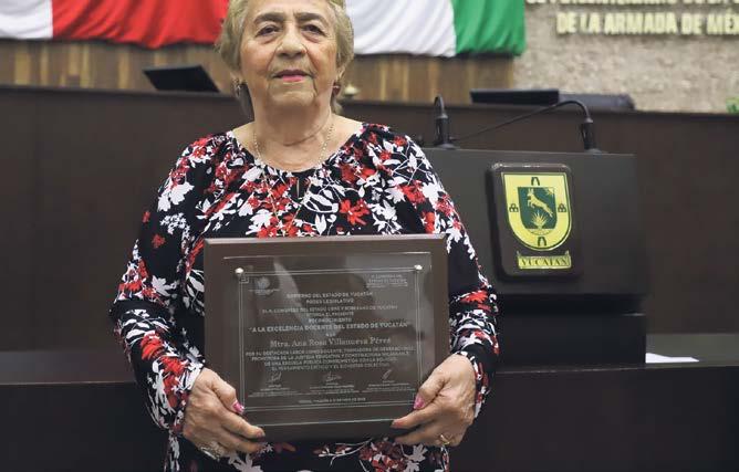 GALARDONADA. La profesora Ana Rosa Villanueva Pérez fue reconocida por dedicar parte de su visa a formar generaciones mediante la educación. que se eligió, de manera unánime, a la maestra Ana Rosa Villanueva Pérez como recipiendaria del Reconocimiento a la Excelencia Docente del Estado de Yucatán 2025. Esta decisión fue respaldada tanto por el comité de postulación como por todas y todos mis compañeros legisladores, quienes, con pleno conocimiento de lo que significa ejercer la docencia, coincidimos en que la maestra Villanueva Pérez es, sin lugar a duda, una merecedora indis-