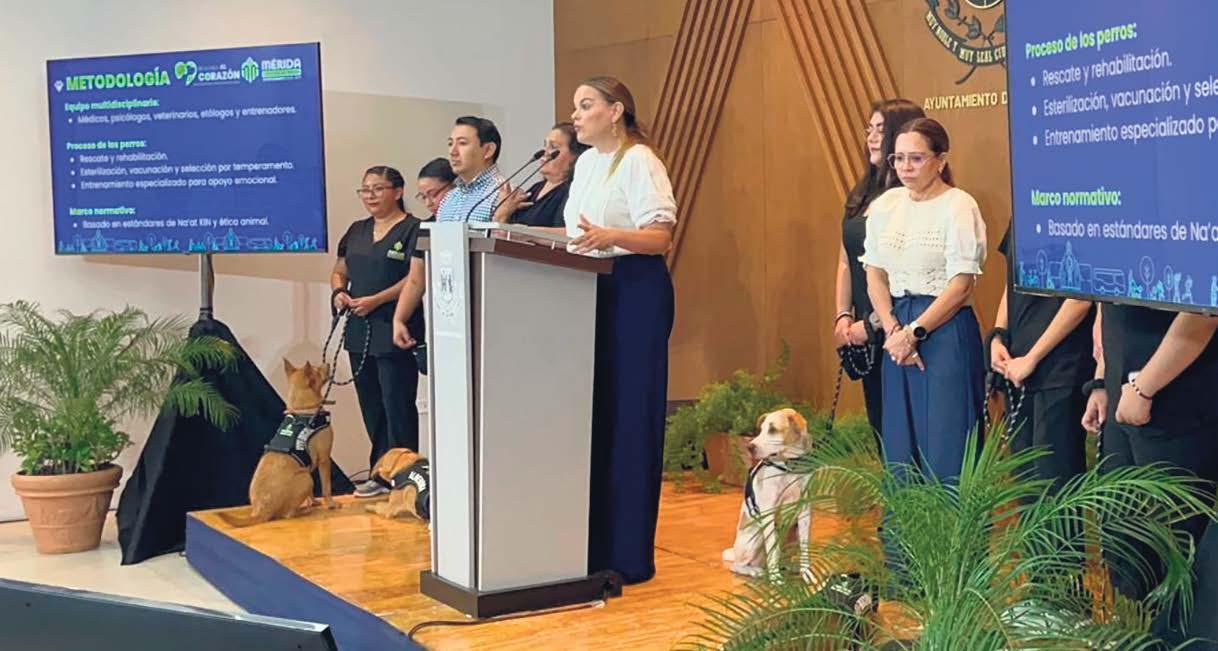 La alcaldesa de Mérida, Cecilia Patrón Lavida, presentó el programa “De la Calle al Corazón”. Con esta iniciativa un total de cinco canes ya fueron rehabilitados para ofrecer compañía a personas vulnerables P.5