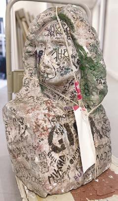 El descubrimiento se realizó durante un allanamiento en el marco de una investigación por fraude, pero no dieron más detalles. La policía judicial publicó una imagen del busto recuperada en sus redes sociales, en el que aparece con pintadas y sin nariz. /AFP AFP