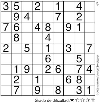 Complete el recuadro de tal manera que cada fila, columna y cuadro de 3x3 tengan los números del 1 al 9.